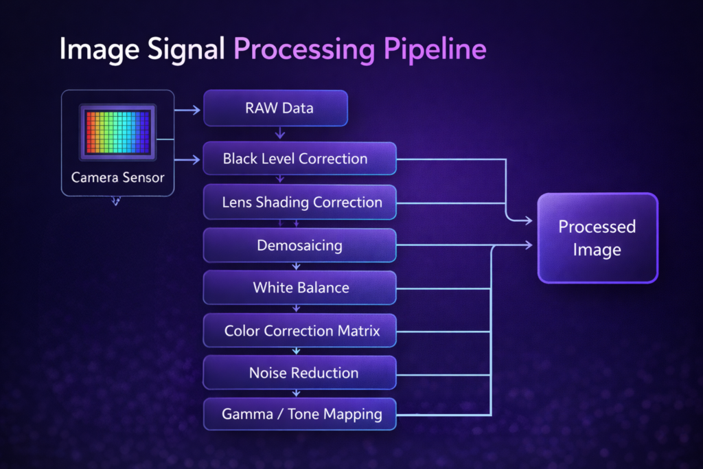 Raw sensor data is not an image. It’s a grid of light intensity values – one per pixel – that needs to be processed before it looks like anything. The ISP handles this processing pipeline, which includes dozens of operations happening in real time on every frame.